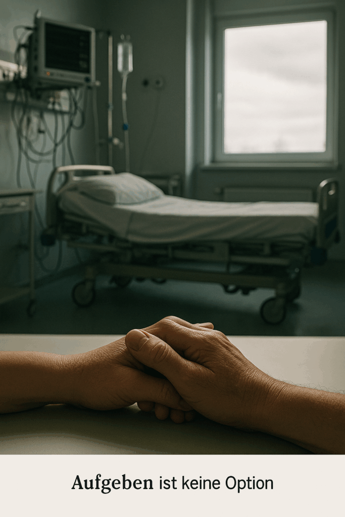Ihr Blick blieb an meinem Gesicht hängen, wanderte zu den Schläuchen, zu meiner Hand – und versteinerte.